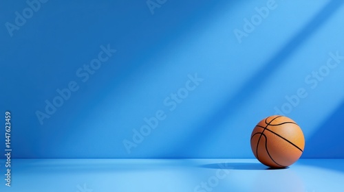Solitary Basketball on Blue Background: Minimalist Sport Photography
