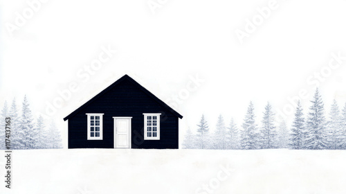 cabin, black, snowy, winter, landscape, house, forest, snow, serene, peaceful, isolated, tranquil, tree, pine, cold, white, minimalistic, scenic, outdoors, nature, solitude, remote, architecture, seasonal, quiet, crisp, clear, picturesque, beautiful, fresh, wilderness, rural, environment, ice, beauty, field, open, exterior, simple, calm, frosty, isolation, winterly