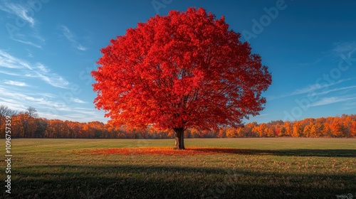 Solitary Crimson Majesty: A Vibrant Autumn Landscape