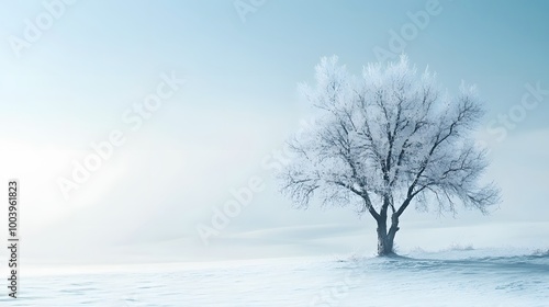 Solitary Frost-Covered Tree in a Snowy Field