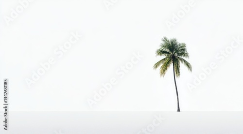 Solitary palm tree on white background.