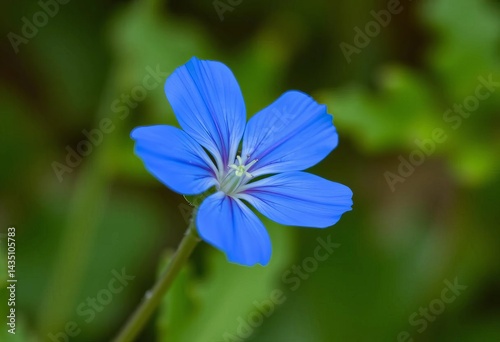 Solitary speedwell blossom, vibrant blue petals against blurred green foliage, wild, background