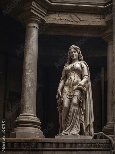 Solitary statue in the ruins of a once-glorious city captures the essence of opulence and decay and transports viewers to a bygone era of splendor.