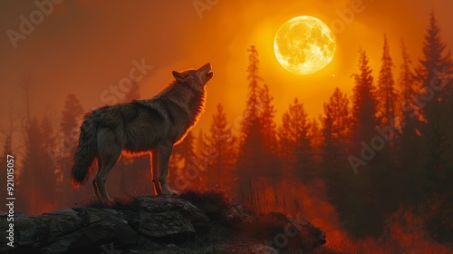 wolf, nature, night, moon, forest, silhouette, aurora borealis, wildlife, landscape, scenic, dramatic, mystical, twilight, natural, aethereal, outdoors, adventure, howling, rock formation, glowing, vibrant, green, purple, fisheye, detail, contrast, lighting, mystery, atmosphere