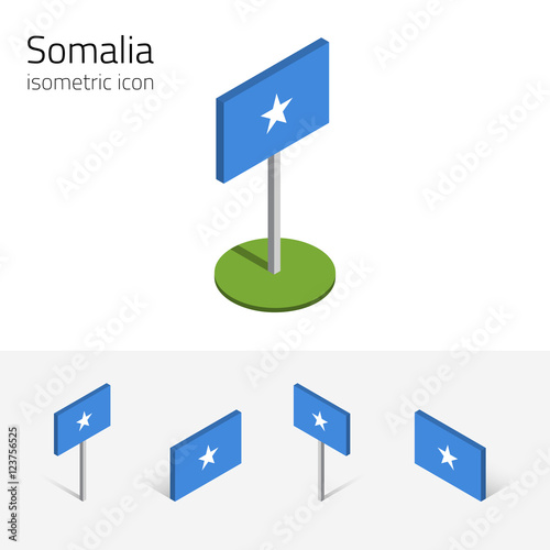 Somali flag (Federal Republic of Somalia), vector set of isometric flat icons, 3D style, different views. Editable design elements for banner, website, presentation, infographic, poster, map. Eps 10