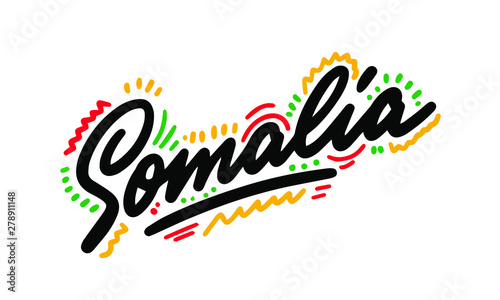 Somalia Word Text Handwritten Font and Swoosh Shape Design Vector Illustration.