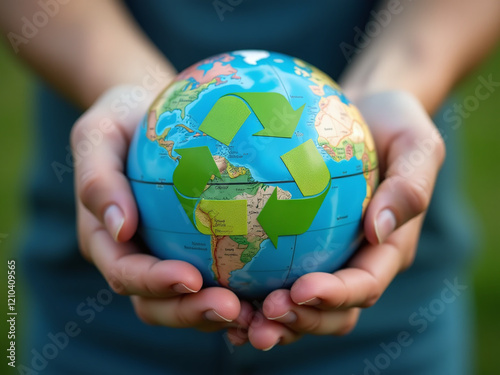 Someone Is Gripping A Globe Bearing A Recycling Logo Indicating Their Commitment To Environmental Sustainability Practices Globally. 00002