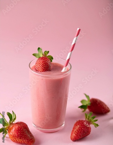 Sommerlicher Erdbeer-Smoothie mit pinkem Strohhalm