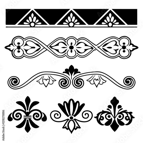 pattern, design, ornament, vector, flower, floral, decoration, vintage, frame, border, illustration, art, element, tattoo, swirl, ornate, scroll, leaf, black, seamless, set, decor, wallpaper, baroque, style