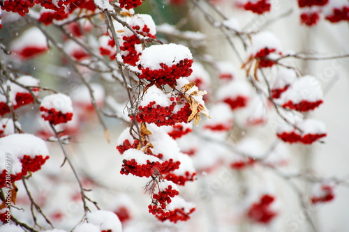 Sorbus aucuparia, Rowan under snow