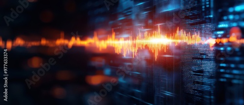 Sound wave visualization with vibrant colors and digital elements, representing audio technology and electrical signals.