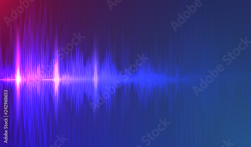 Sound waves oscillating dark blue light, Abstract technology background. Vector. - stock