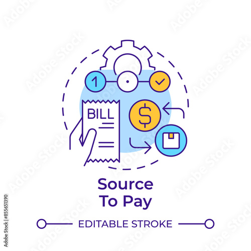 Source to pay multi color concept icon. Operational costs, resource allocation. Round shape line illustration. Abstract idea. Graphic design. Easy to use in infographic, presentation