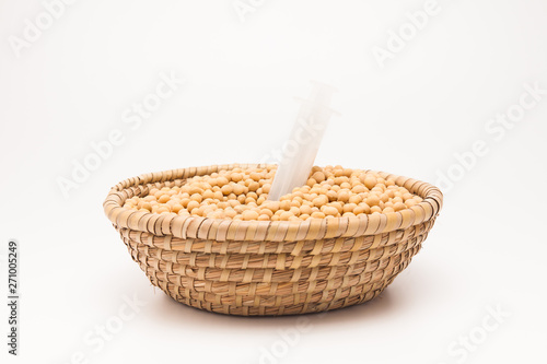syringe, isolated, soybean, basket, glasses, food, healthy, seed, grain, ingredient, agriculture, organic, nourishment, background, dry, white, natural, vegetarian, raw, diet, health, heap, wooden, yellow, closeup, vegetable, bean, soy, protein, alimentary, nature, fresh, legume, plant, soy