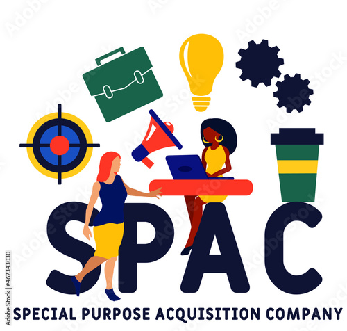 SPAC, special purpose acquisition company symbol. Business and SPAC, special purpose acquisition company concept. vector illustration concept with keywords and icons. lettering illustration with icons