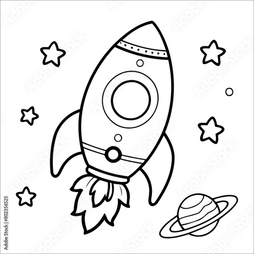 Space Rocket Outline Coloring Page for Kids