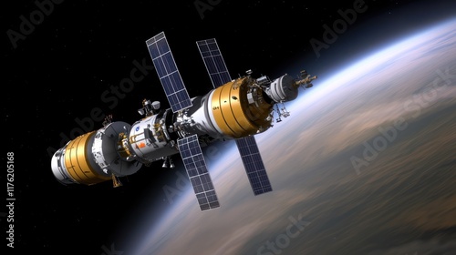 Space station orbiting Earth, showcasing advanced technology.