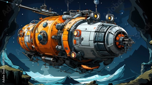 Spacecraft On Orbit Earth Spaceship Outer, Background Banner HD, Illustrations , Cartoon style