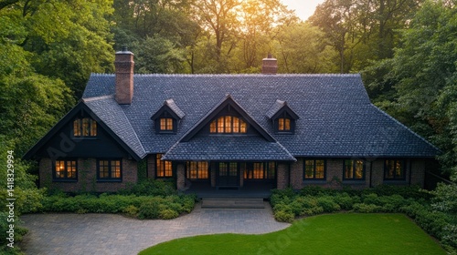 house, home, property, estate, luxury home, luxury, exterior, forest, tree, wood, garden, landscaped, front, view, charming, beautiful, elegant, modern, classic, peaceful, quiet, residential, investment, dream, sold, listing, architecture, design, roof, window, door, brick, stone, patio, driveway, family, contemporary, nature, summer, lifestyle