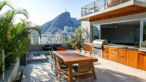 Spacious Modern Rooftop Terrace with Stunning City View and Grill Area, Perfect for Outdoor Dining and Relaxation in Rio de Janeiro, Brazil