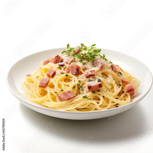 Spaghetti Carbonara isolated on plain white background
