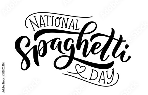 Spaghetti day. Hand lettering design for Spaghetti day. Vector illustration Hand drawn text for National holiday. Script. Calligraphic design for print card, banner, poster.