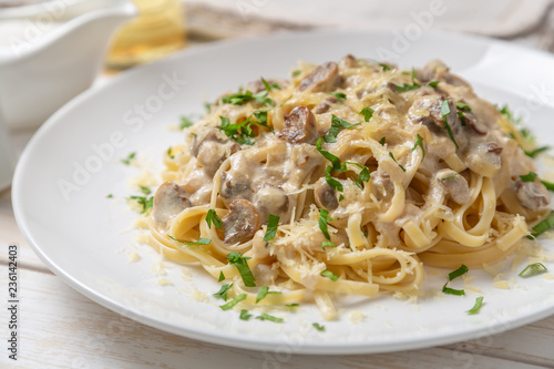 Spaghetti with mushrooms in cream sauce