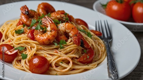 spaghetti, pepper, cream, chorizo, shrimp, pasta, meal, lunch, italian, cookery, epicure, dish, food, plate, healthy, tasty, table, dinner, diet, delicious, cooked, prawn, prepared, rustic, top, herb, seafood, closeup, spicey, eatery, background, cooking, fresh, culinary, fork, organic, noodle, parmesan, chopstick, vegetable, chili, wooden, eating, garlic, oil, parsley, cheese, deliciously, object