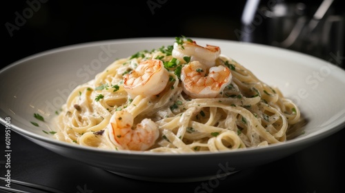 spaghetti with shrimp. Generative AI
