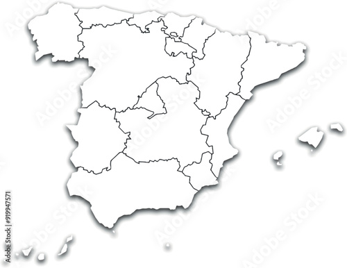 spain, mediterranean sea, santiago de compostela, silhouette, saragossa, nation, balearic islands, municipality, province, mediterranean, territory, asturias, country, travel, illustration, europa, city, region, madrid, island, cartography, state, barcelona, geography, political, abstract, graphic, national, earth, outline, isolated, icon, concept, background, symbol, administrative, blue, contour, valencia, galicia