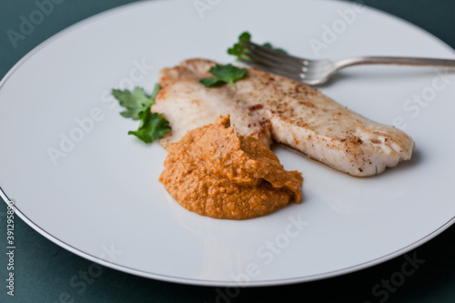 sauce, tomatoes, plate, spanish, cookery, fork, vegetable, fish, meal, food, epicure, prepare, nobody, no people, indoor, day