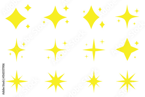 Sparkle star vector icons set. Star icons set. Shine or sparkle vector set .Sparkling star in yellow color. Shine icon. Star sparkle icon.