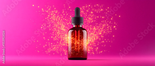 Sparkling beauty elixir studio background product photography vibrant pink close-up skincare concept