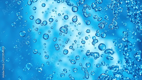 Sparkling Blue Water Bubbles - Freshness Closeup