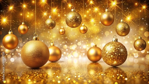 Sparkling Christmas background with golden balls, festive, holiday, glitter, celebration, ornaments, decorations, shiny