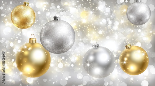 Sparkling Christmas Ornaments on Glittering Silver Background