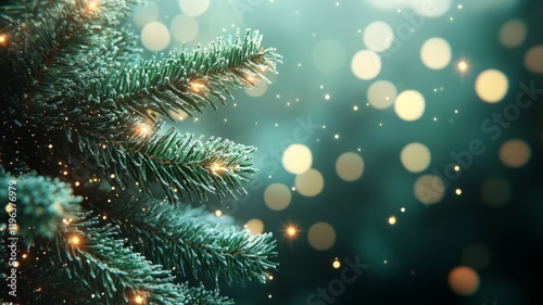 Sparkling Christmas Tree Branch with Festive Lights and Bokeh