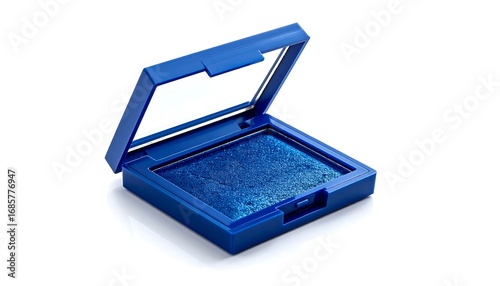 Sparkling cobalt blue eyeshadow in a square mirrored makeup compact