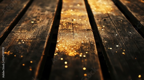 Sparkling Dust on Rustic Wood Surface