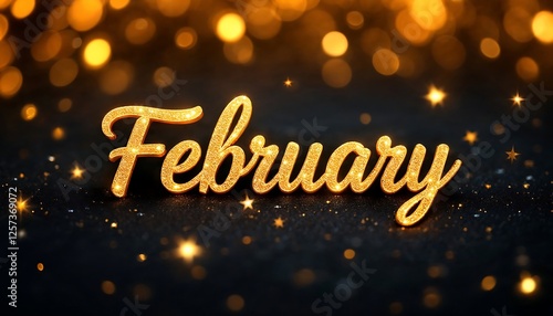 february, glistering, gold, month, sparkle, shine, calendar, year, time, season, winter, celebration, holiday, light, bokeh, dark, background, glamour, luxury, elegant, festive, shiny, bright, gold, twinkling, magical, beautiful, special, romantic, love, star, night, design, text, font, graphic, illustration, image, abstract, photo