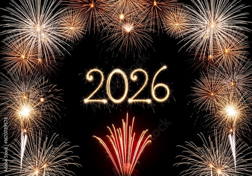 Sparkling Fireworks Display Celebrating the Arrival of the Year Twenty Twenty Six with Festive Celebrations and Bright New Beginnings