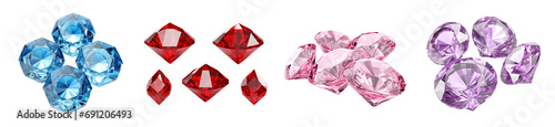 three-dimensional, diamond, beautiful, crystal, gem, celebrate, group, clear, carat, nobility, precious, rich, round, royalty, reflect, sparkle, stone, scintillation, royals, jewellery, cutting, brilliant, expensive, gift, gemstone, luxury, collection, marriage, set, shine, transparent, colourful, treasure, colours, concept, isolated, render, wealth, value, jewellery, macro, closeup, reflex, red, pink, purple, blue, ai, generative