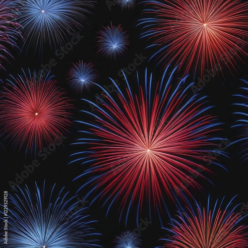 Sparkling red and blue fireworks lighting up the night sky, AI generated