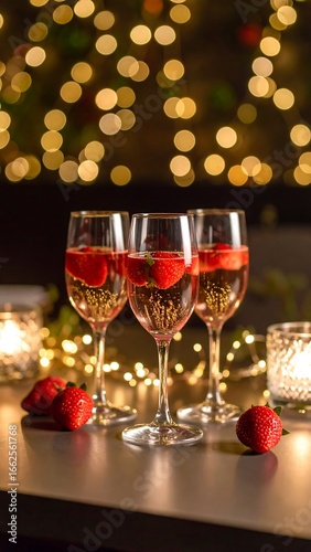 Sparkling strawberry cocktails, festive lights