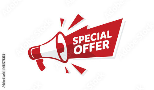 special, offer, promotion, megaphone, red, sale, discount, marketing, alert, banner, announcement, retail, price, deal, shopping, event, product, savings, shop, exclusive, campaign, advertisement, vector, symbol, three-dimensional