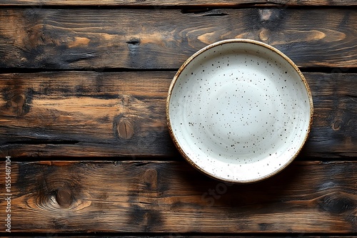 Speckled Ceramic Bowl on Rustic Wooden Table with Earthy Tones