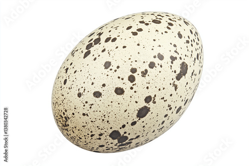 speckled quail egg isolated against white background showcases its unique texture and color, evoking sense of natural beauty and simplicity