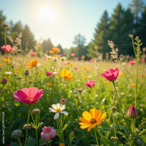 Spectacular display of wildflowers in a sun-drenched meadow , idyllic, scenery, sun