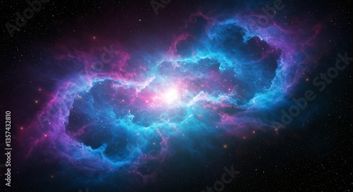 Spectacular Nebula Galaxy with Bright Star Burst and Colorful Clouds