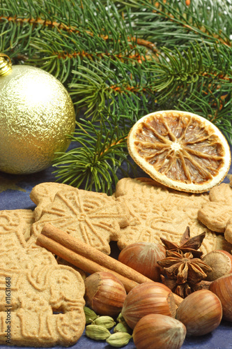 ingredient, orange, nut, cinnamon, anise, cardamon, filbert, firbranch, bauble, cookie, pastry, speciality, aliment, food